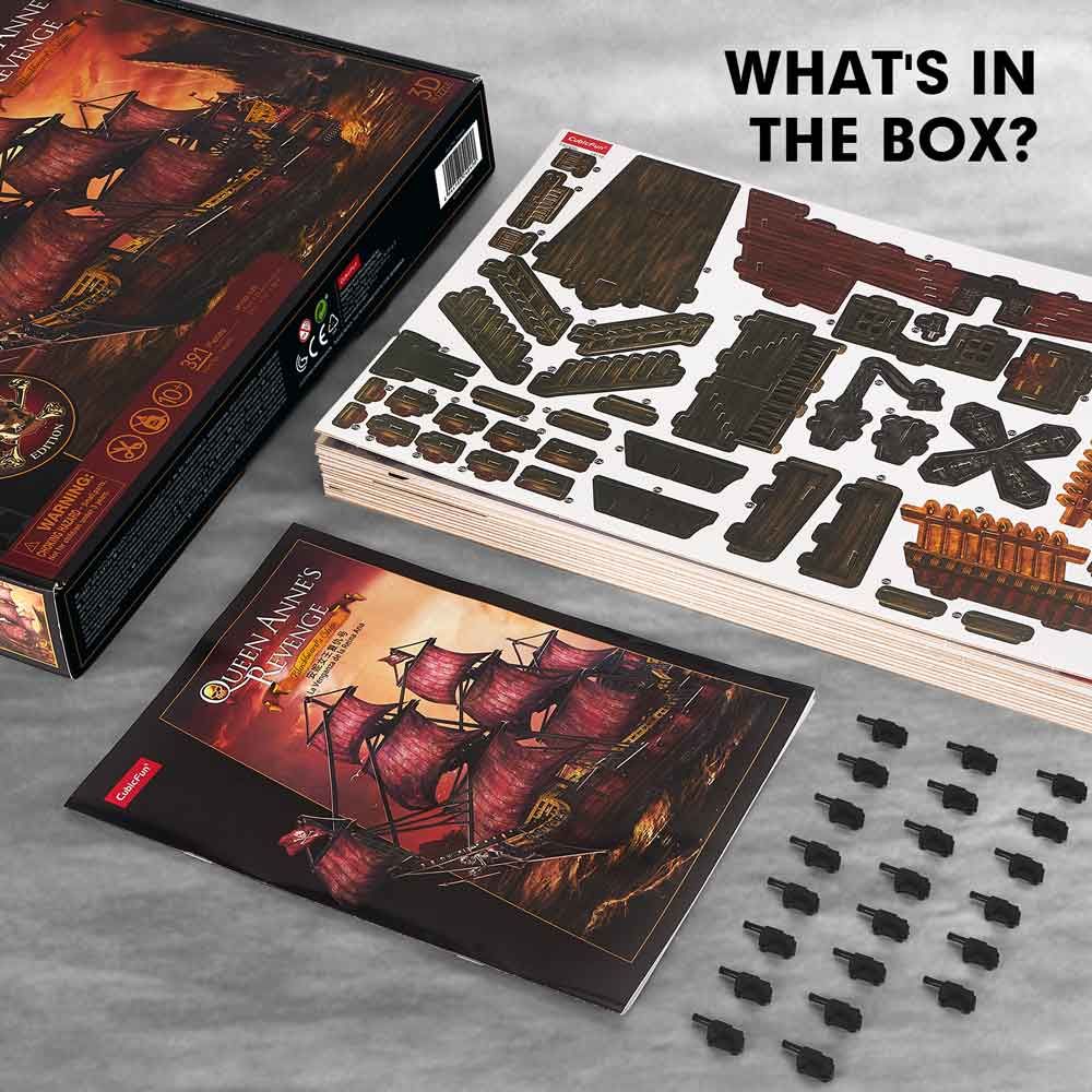 Recreate the legendary pirate ship with the CubicFun 3D Puzzle Queen Anne's Anniversary Edition featuring 391 intricately designed pieces. This model showcases detailed elements such as sails, lanterns, and cannons, bringing the pirate ship to life in stunning realism. Perfect for both adults and children, this puzzle offers a fun, challenging, and creative activity for puzzle enthusiasts and pirate fans alike.