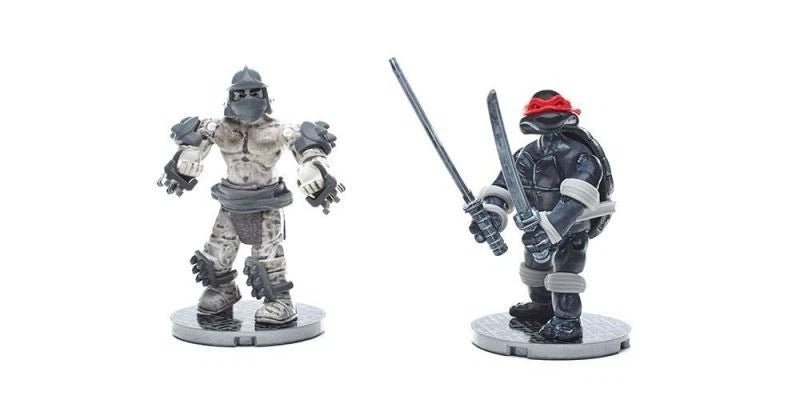 Mega Construx DPD80 is a collector's edition 399-piece building set recreating the Eastman & Laird Rooftop Combat scene with highly detailed, fully poseable micro-action figures of Leonardo and Shredder battling on a New York City rooftop. This premium TMNT set features a modular rooftop diorama with fire escapes, air conditioning units, brick walls, and debris, plus authentic accessories like Leonardo's katana swords and Shredder's armor blades for dynamic display and play.